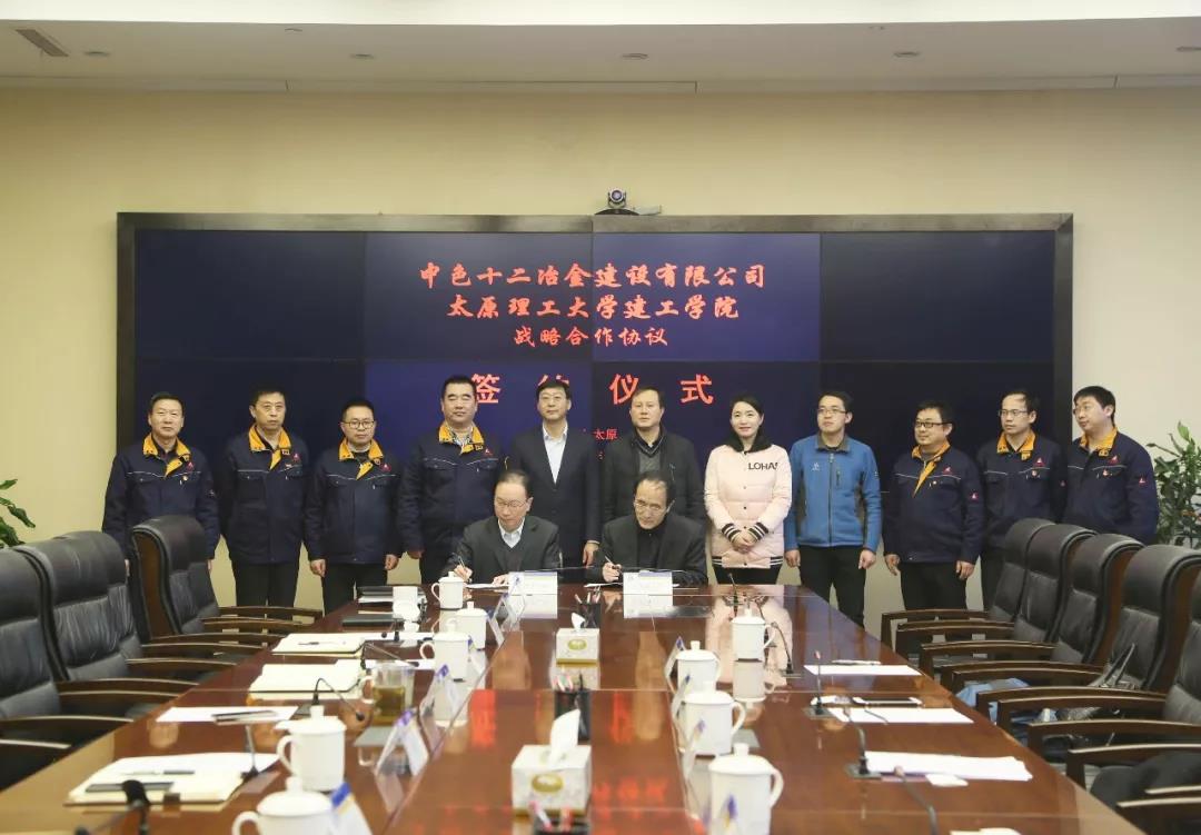 2018年12月18日,公司同中色十二冶金建设有限公司在在十二冶28楼多媒体会议室就产学研合作达成战略合作框架协议。中铝国际副总裁、十二冶党委书记、执行董事刘瑞平,十二冶金建设有限公司副总经理杜继雷,十二冶金金属结构公司党委书记、总经理赵众,副总经理吴洪满、董及刚,工会主席韩鸿志等,以及建工公司经理雷宏刚、副经理董晓强、土木系副主任王蕊、土木实验中心副主任闫亚杰参加了签约仪式。