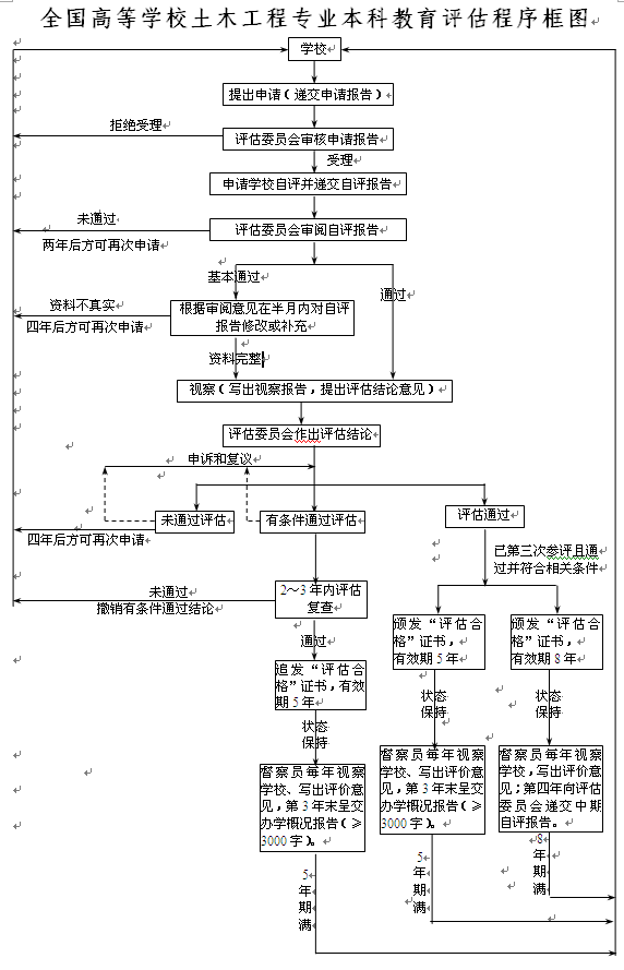 评估通过的院校,必须分别于第三年末向评估委员会呈交办学概况报告(不少于3000字),说明获得证书以后的发展情况,取得的成绩、经验以及尚待改进的问题。资格有效期满必须重新申请评估。