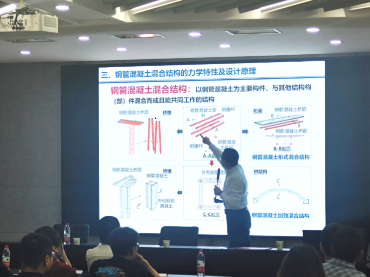 随后,韩林海教授在博学馆A座五层结构报告厅作了题为“基于全寿命周期的钢管混凝土结构分析理论及应用”的学术报告,公司200多名师生参加了报告会。报告会由王蕊教授主持。报告开始前,副经理董晓强教授代表公司为韩林海教授颁发了“MS88官方网站客座教授”聘书。学术报告现场气氛活跃,反响热烈。韩林海教授就师生提出的相关问题进行了细致、耐心的解答和交流。韩林海教授深厚的学术造诣、精益求精的探索精神、虚怀若谷的学者风范学术给与会者留下了深刻印象。报告会取得圆满成功。