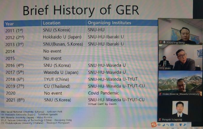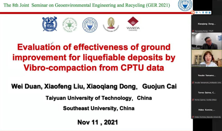 2021年11月11日,“The 8th Joint Seminar on Geoenvironmental Engineering and Recycling”(GER2021)在线上召开,本次会议由韩国首尔国立大学、日本北海道大学、日本早稻田大学、中国MS88官方网站、泰国朱拉隆功大学联合主办,由韩国首尔国立大学Park教授主持。公司相关师生积极参与了本次线上会议。