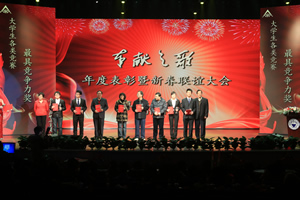 表彰大会在歌舞《王者归来》中拉开帷幕,并通过VCR短片展示了建工公司2012年取得的成就;共颁发了十大奖项,分别是:本科教育—最具人气奖、研究生教育—最具魅力奖、科学研究—最具潜力奖、110校庆—最具支持力奖、社会服务—最佳作品奖、工民建80级“圆梦”奖学金—最具感染力奖、文体载舟—最具表现力奖、人才引进—最具冲击力奖、老员工竞赛—最具竞争力奖、建工公司—最具凝聚力奖。两个多小时的表彰大会和演出,诠释了“奉献”的涵义,展示了建工的风采,整个会场洋溢着喜悦与感动。我们感受到了《我爱你中国》的深情、《爱是你我》的震撼、《阳光路上》的乐观……
