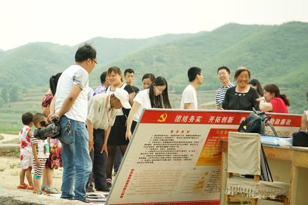 夜深了,村民们仍聚集在“长岭摄影展”、“毕业设计展”的背景墙下,热烈讨论着。