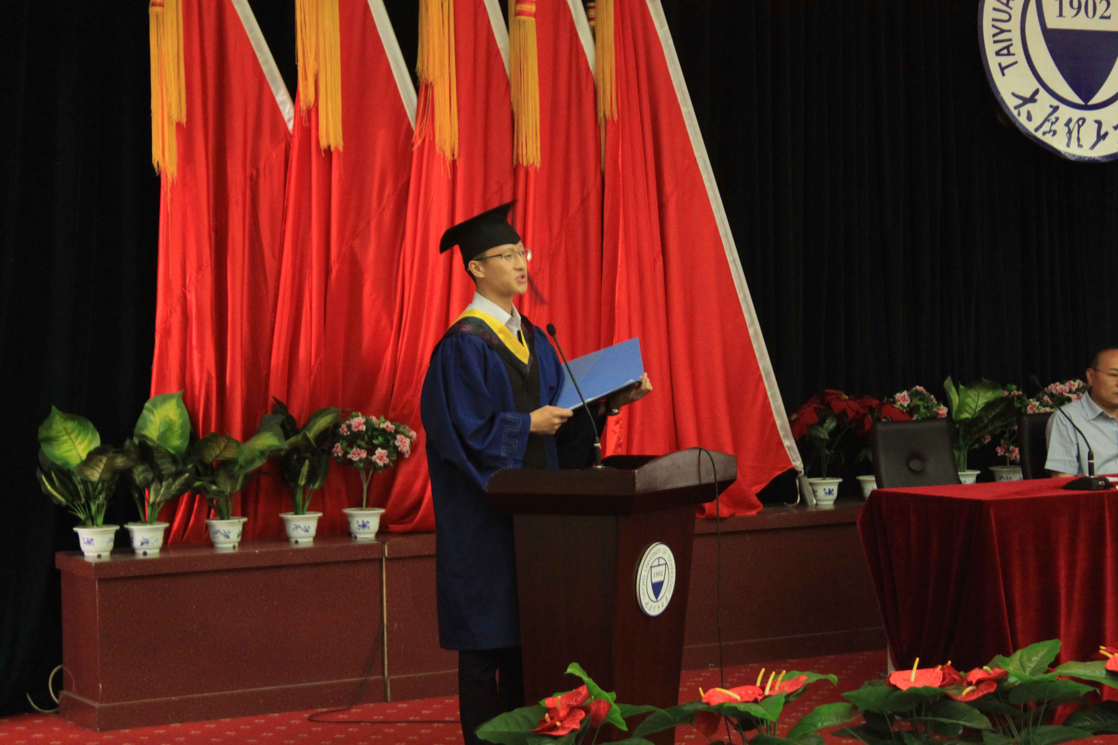硕士毕业生代表李博发言,他以学习历程为切入点,回顾了老员工活的点点滴滴,祝愿每一位毕业生直面属于自己的时代,担当起建设祖国的责任。