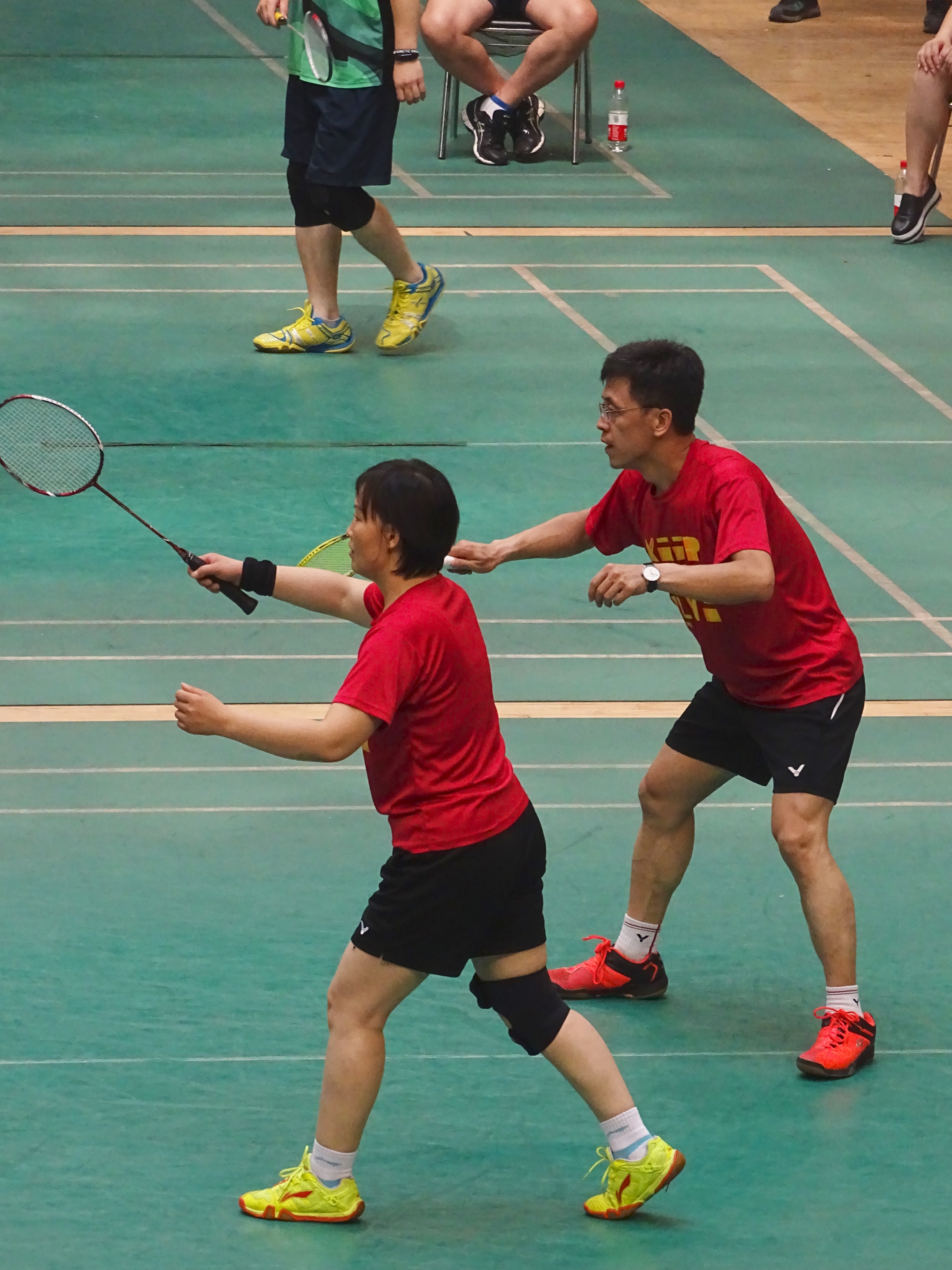 7月2日上午公司代表队小组赛轻松战胜计软和后勤代表队,以小组头名晋级16强,下午对阵政法公司,三比零顺利挺进8强。7月3日上午遇到强大的体育公司,我队表现出更胜一筹的实力,三比一昂首迈进前四。随后在四进二的比赛对阵继续教育公司,以不可阻挡的势头三比零战胜对手,提前进入决赛。下午两点半,公司代表队对阵夺冠呼声最高的现代科技公司,现场人山人海,黄庆学董事长和雷宏刚经理也来到了比赛现场观看决赛。第一场混双周吉平韩俊萍稳稳的控制住局面,顺利取得开门红。第二场男双的比赛是整场比赛胜负的关键所在,双方都志在必得,由王存寿和王旭泽组成的老搭档超水平发挥,完全压制对方一举击败对手,拿下了宝贵的一分。第三局女双的比赛,韩俊萍和陈惠芳惜败给强大的对手。第四局男单的较量更是紧张激烈,扣人心弦,我队头号队员周吉平稳扎稳打,以更强的实力拿下对手,让建工成为了最后的王者。