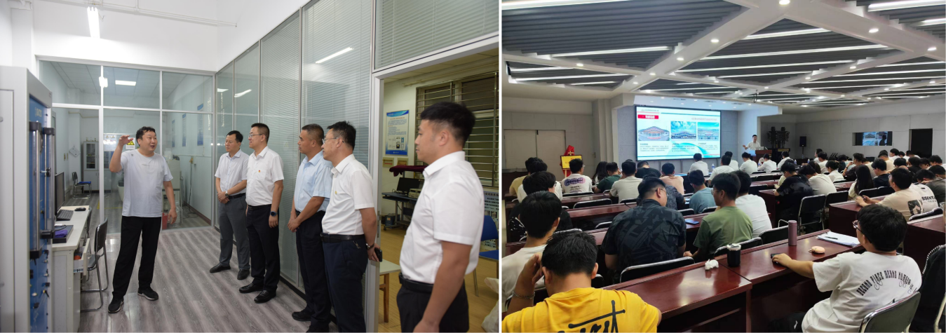 颁奖仪式结束后,周磊一行参观了土木工程防灾与控制山西省重点实验室,同时,黄磊做了企业宣讲,并与现场同学们进行了深入交流。