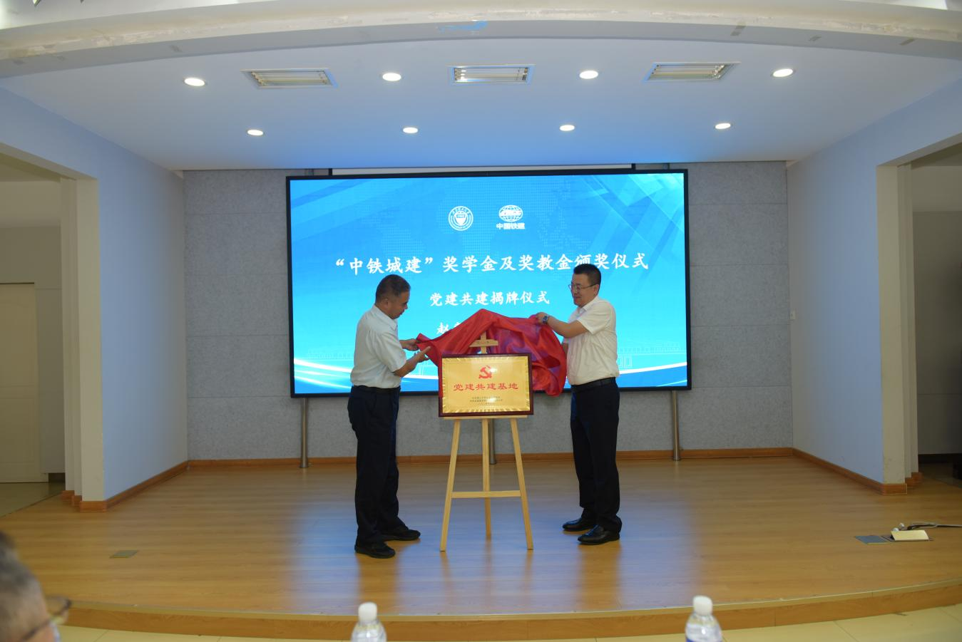 颁奖仪式上,赵惠民作为公司代表和中铁城建集团第一工程有限公司代表周磊共同为院企党建共建基地揭牌。