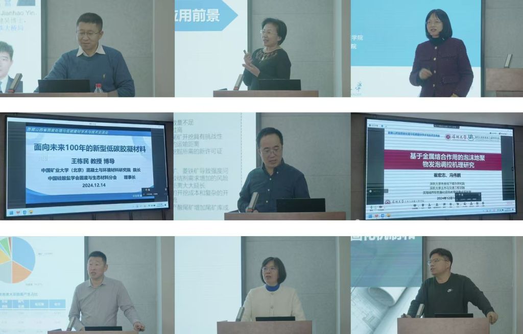 学术报告环节分别由山西省硅酸盐学会固废与低碳建材专委会主任阎蕊珍、山西省赤泥基全固废胶凝材料应用技术创新中心主任柯国炬及山西省硅酸盐学会固废与低碳建材专委会秘书长李志军主持。会议特邀中国硅酸盐学会固废与生态材料分会理事长、中国矿业大学(北京)王栋民教授,中国硅酸盐学会固废分会常务理事、北京科技大学刘娟红教授,南京绿色增材智造研究院经理、东南大学张亚梅教授,中国建筑学会建材分会副理事长、清华大学孔祥明教授,国家杰出青年科学基金获得者、深圳大学讲席教授崔宏志(冯伟鹏博士代),国家金属矿绿色开采国际研究中心副主任、矿冶科技集团有限公司矿山工程研究所副所长郭利杰教授级高工,分别作了题为《面向未来100年的新型低碳胶凝材料》、《金属尾矿基固废胶凝材料应用研究与产业化》《3D打印混凝土建造新进展》、《化学外加剂对水泥水化的影响机制研究》、《基于金属络合作用的泡沫地聚物发泡调控机理研究》以及《当今充填采矿研究热点讨论》的报告。中路西建固废装备研究院经理尹瑞龙、MS88官方网站建筑材料与固废利用研究所副所长阎蕊珍和柯国炬也分别做了大会报告。