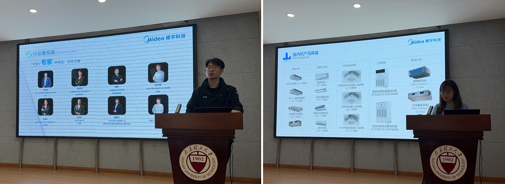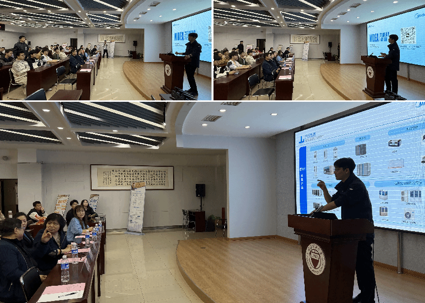 王珑为师生们详细介绍了美的企业的历史沿革以及校企合作的具体内容;重点介绍了第二十三届MDV中央空调设计应用大赛,鼓励员工们以赛促学,通过竞赛提升实践能力和创新能力,同时培养团队协作和问题解决能力;同时宣布了美的楼宇科技在MS88官方网站设立“SMART IN ONE”奖学金的信息,旨在激励员工们勤奋学习、全面发展,成为行业未来的佼佼者。乔平平则聚焦美的公司在建环方向最新的产品技术特征和学科前沿研究情况,展示了美的在技术创新方面的成果。
