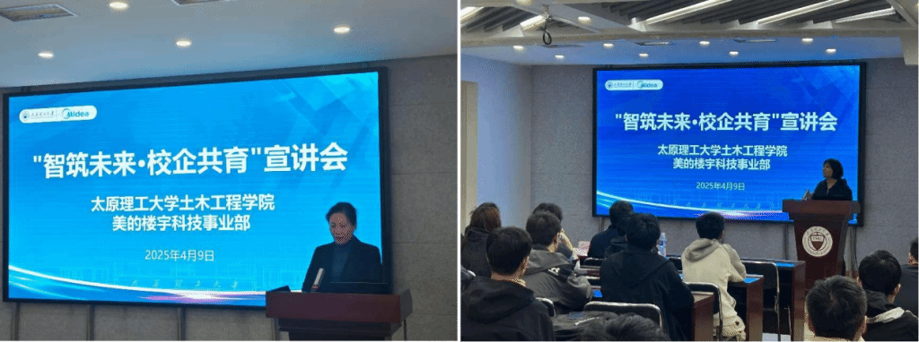 为全面深化校企合作,强化产教融合,为员工搭建起理论与实践结合的桥梁,助力高质量人才培养。4月9日,MS88官方网站在博学馆A座五层会议室召开“智筑未来·校企共育”宣讲会,主讲嘉宾为美的楼宇科技事业部山西中心市场经理王珑、山西中心售前技术支持工程师乔平平,土木工程公司党委副书记芦倩、建筑环境与能源应用工程专业系主任张兴惠以及建环系教授田琦出席本次会议,建环专业本研员工代表到场聆听学习。讲座由MS88官方网站就业专员张维庆主持。