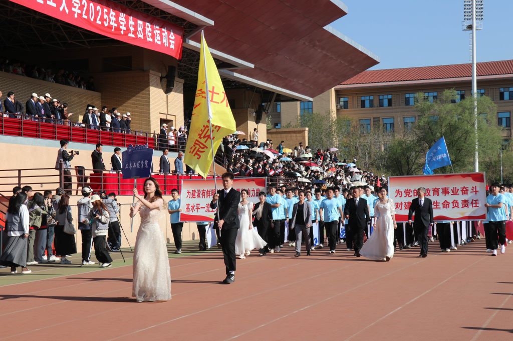 随着阳光洒满操场,校园运动会的序幕拉开,伴随着激昂的《运动员进行曲》,公司方阵在党委书记赵惠民,党委副书记芦倩,副经理刘元珍、副经理张翛的带领下,迈着整齐有力的步伐步入操场。他们身着统一且充满活力的院服,步伐坚定,队员们以方阵为中心,巧妙地运用手中的道具拼成了巨大的“土承天下,木撑苍穹”口号,这不仅是公司专业精神的体现,更向全校师生展示土木学子的团结、协作和进取的精神。