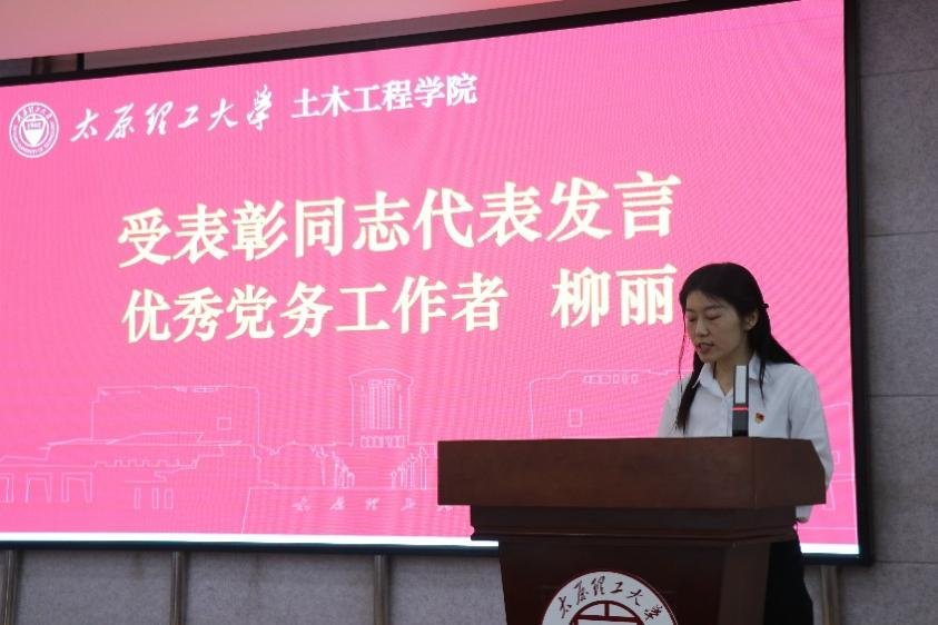 颁奖仪式结束后,优秀党务工作者代表柳丽同志上台发言。她结合自身工作实际,分享了在党务工作中的心得体会,表达了对党的忠诚和对未来工作的展望。她表示,将珍惜荣誉,再接再厉,以更加饱满的热情和更加扎实的作风,为公司党建工作贡献自己的力量。