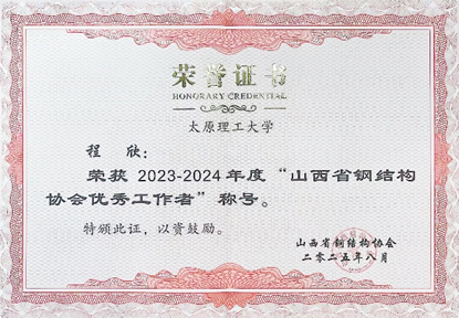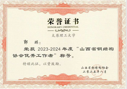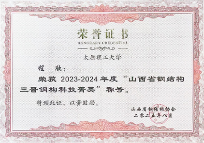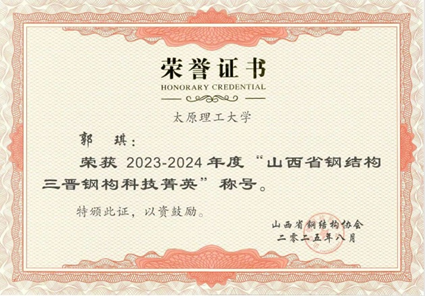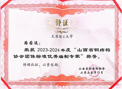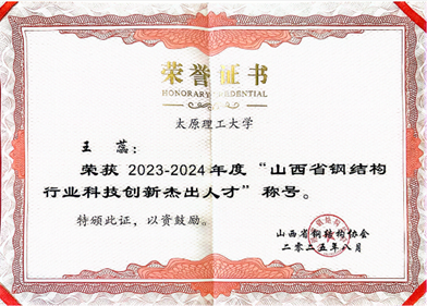 在“山西省钢结构协会科技成果评价”中,《结构构件抗火灾与冲击性能设计方法及应用》荣获一等奖,《箱型柱移动焊接机器人的研究与应用》荣获二等奖。