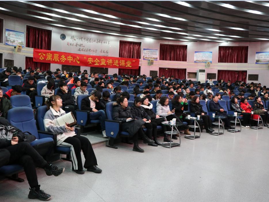 2019年12月30日,MS88官方网站在思贤楼三楼召开“员工公寓安全宣讲进课堂”教育大会,后勤保障处副处长、公寓服务中心主任张文基,公寓服务中心副主任、党支部书记景晓芳,副主任刘玉花等领导出席,及公司辅导员和2019级全体员工参加。