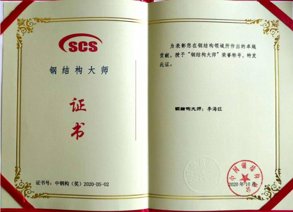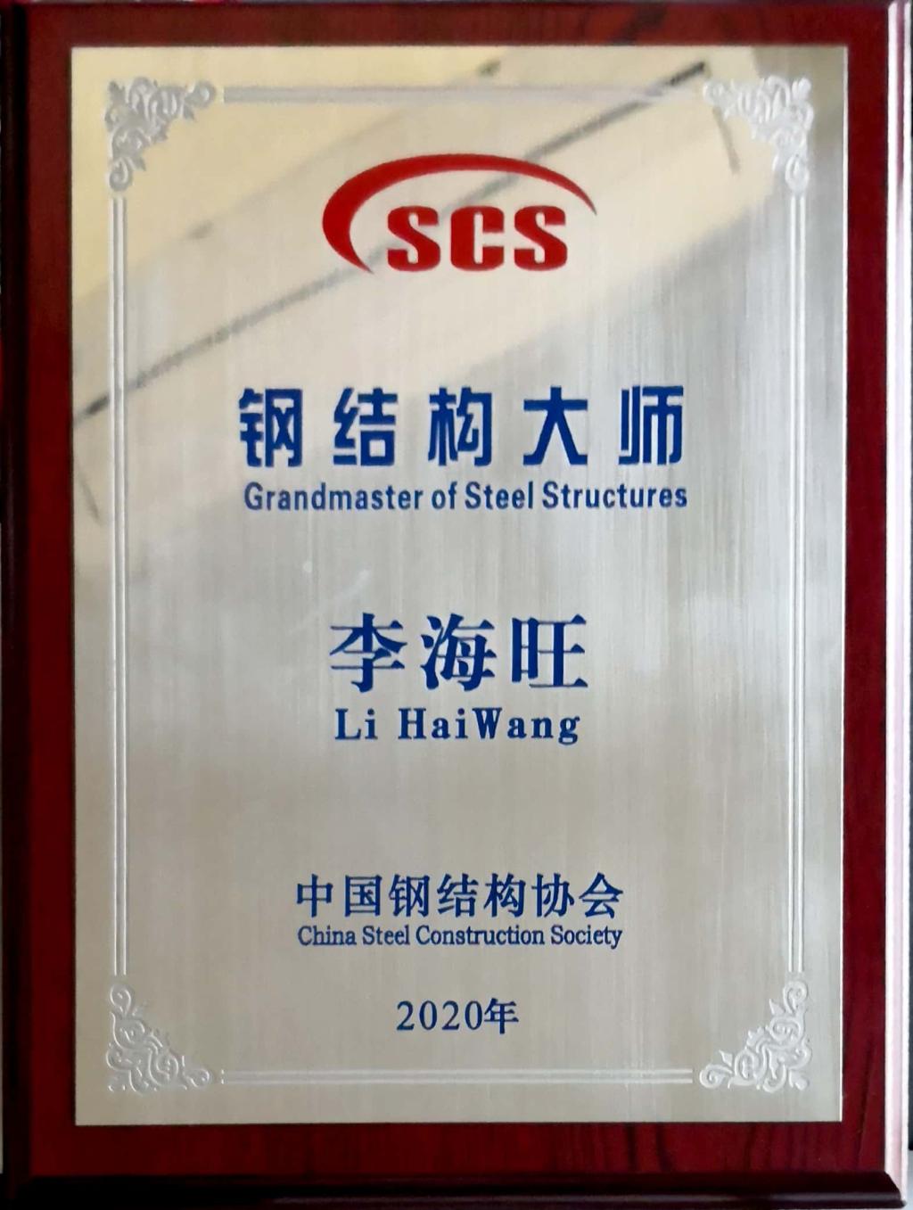 “钢结构大师”是经国家科学技术奖励工作办公室批准,中国钢结构协会为表彰推动钢结构行业领域的技术进步与创新的杰出贡献者,于2015年设立的,此年度共有8人当选。