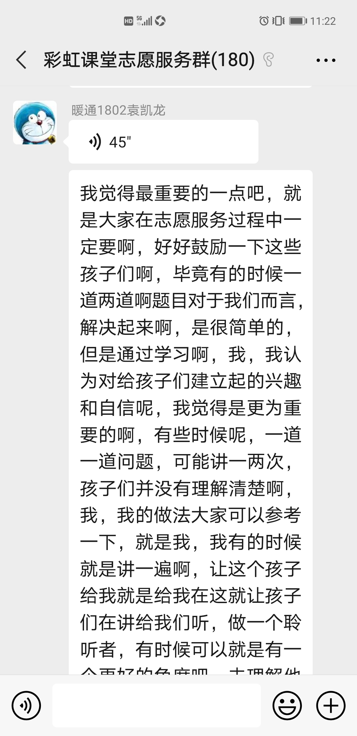习近平总书记曾提到,我们要把学习的具体目标同民族复兴的宏大目标结合起来。只有把小我融入大我,才会有海一样的胸怀,山一样的崇高。在疫情肆虐的特殊时期,“彩虹课堂”志愿服务项目为土木学子提供了学以致用,服务社会的优质平台,百余名志愿者向农村留守儿童传授知识、答疑解惑、奉献爱心,彰显了新时代老员工的责任和担当。一次次视频连线,一份份学习资源,一声声关怀呵护,无不承载着他们的青春正能量,这一幕幕在网络的连接下,汇成一道绚丽的彩虹,冲破疫情的重重阴霾,绽放出土木学子的热爱与光芒。