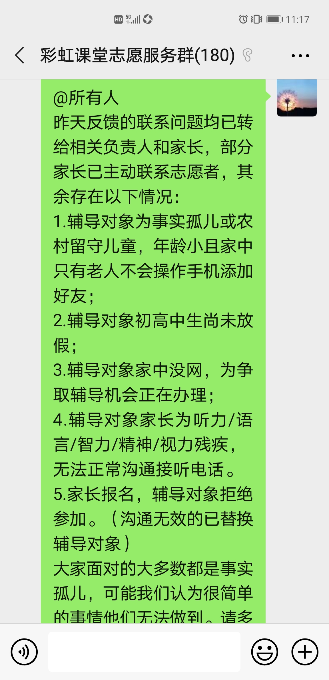 为了切实解决留守儿童在疫情期间的课业辅导难题,公司发扬热心公益,关怀儿童的精神,精细筹划,应时而动,发起了“彩虹课堂”线上一对一课业辅导项目。此次活动共招募了公司一百五十余名本科生和研究生参与志愿服务活动,为平定县各小学、初中的农村留守儿童提供了免费的一对一线上课业辅导。志愿者们通过QQ、微信等新媒体平台拉近了和孩子们的距离,以线上语音、在线答疑、视频教学等方式,让孩子们在家中也能得到“专属老师”的辅导和关怀。