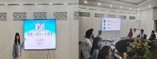 最后,土木1801班的赵蔚同学为大家倾情分享了他为期两年半的员工助理经验。赵蔚提到,在协助老师过程中,老师身上的优良品质潜移默化地影响了他。同时,他指出认真学习的重要性,希望我们的助理要努力做到学习工作两不误。