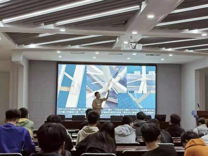 他们有自己的热爱,坚持并为此付出了不懈的努力。他们用自己的行动告诉同学们,要懂得从失败中总结经验,要敢于尝试新的方法,要坚信实践和理论是相辅相成,缺一不可的。报告厅的同学们聚精会神的听讲,积极的提问互动,每个人都受益匪浅,决心在下一次的结构大赛中大放异彩,再创佳绩!