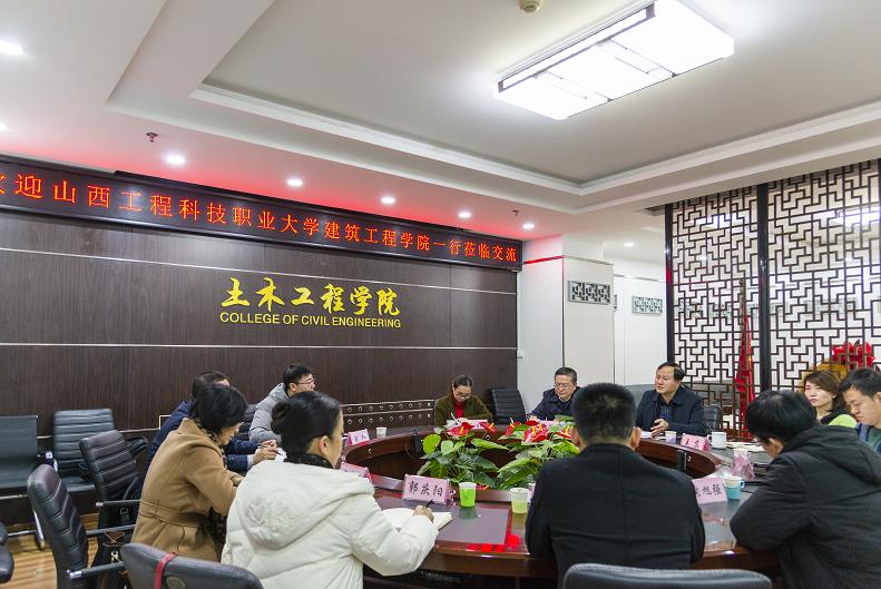 12月10日上午,山西工程科技职业大学建筑工程公司经理宋岩丽、副经理郭庆阳、申海洋、陈峰、智能建造系主任刘炜、地下工程系主任张旭强一行6人来公司交流调研。经理董晓强、副经理葛忻声、基础部主任王蕊、建筑工程系副主任程欣和何斌参加了本次交流会。
