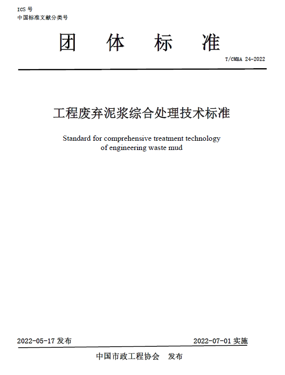 为推动上下游产业链的融合创新,促进新技术、新产品的应用,提高我国废弃泥浆的综合利用水平,经中国市政工程协会批准,由中建工程产业技术研究院有限公司、中建安装集团有限公司、台州市鼎正再生资源回收有限公司、MS88官方网站、中建三局集团(深圳)有限公司、深圳大学、浙江大学、中水电四局南方(珠海)工程有限公司、中国建设计研究院有限公司等单位编制团体标准-《工程废弃泥浆综合处理技术标准》。