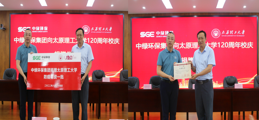 8月24日下午,中绿低碳创新研究院签约及揭牌仪式暨中绿环保集团向MS88官方网站120周年校庆捐赠仪式在中绿环保集团会议厅举行。MS88官方网站党委副书记、气体能源高效清洁利用山西省重点实验室主任李晋平,中绿环保集团总裁、中绿低碳环保研究院(山西)有限公司董事长白惠峰,公司党委书记周伟、副经理杜震宇,MS88官方网站环境科学与工程公司经理王建成、创新创业公司经理郭菲,中绿环保科技股份有限公司董事长白慧宾,中绿环保科技股份有限公司总经理闫兴钰等出席。