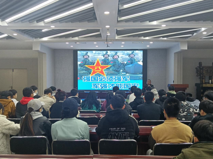 武峻老师以“强国先强军 军强则国安”为主题展开,首先强调了国防的重要意义,分别从国防旗帜、国防知识、海陆空军队建设三个方面入手,给同学们讲解什么是国防,什么是领土、领空、领海。然后就我国国家形势政策、党的二十大报告中对国防和军队的要求进行详细阐述,并带领全体参会员工重温军人誓词,致敬中国军人。最后,分别从学业有帮扶、政治有荣誉、经济有补贴、发展有渠道、就业有保障五个方面介绍了老员工的征兵入伍政策,鼓励同学们实现报国之路,可以来参军,号召同学们积极参与2022年征兵业务培训。