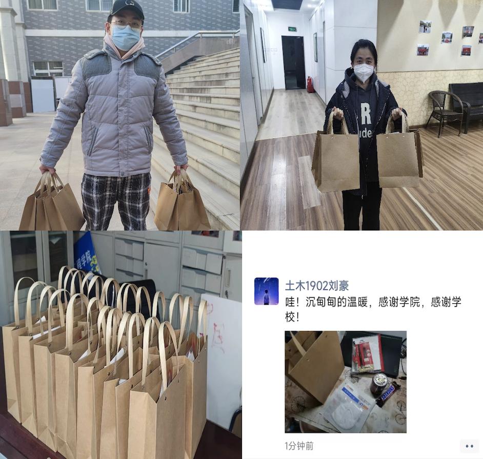 随后,员工代表分时段、分批次领取了考研大礼包,无接触地在各班进行了发放。同学们收到礼包后,深感温暖,备受鼓舞,纷纷表示,将拿出最好的状态冲刺考研,以优异的成绩回报公司,不负老师和同学们的殷切期望。