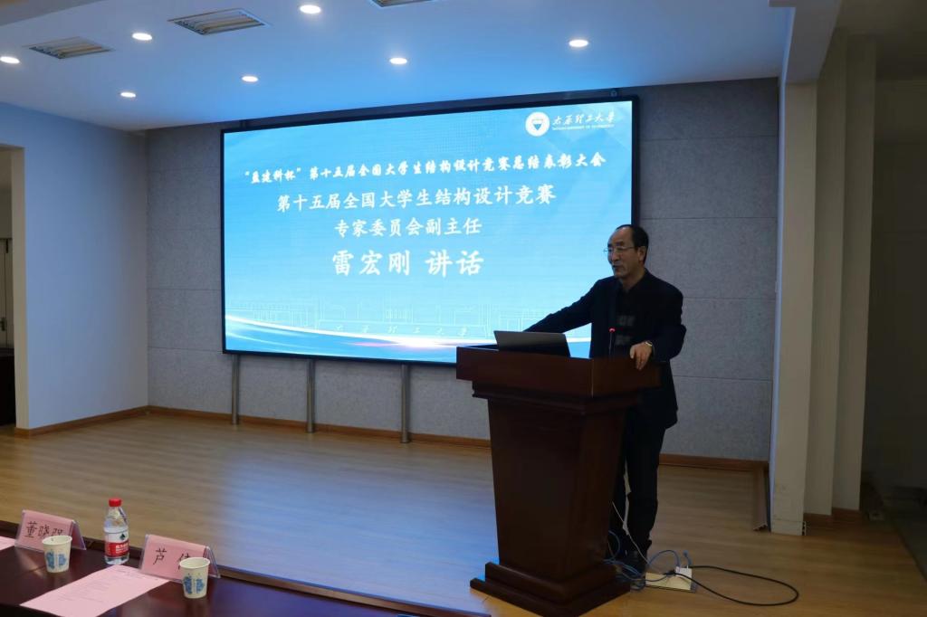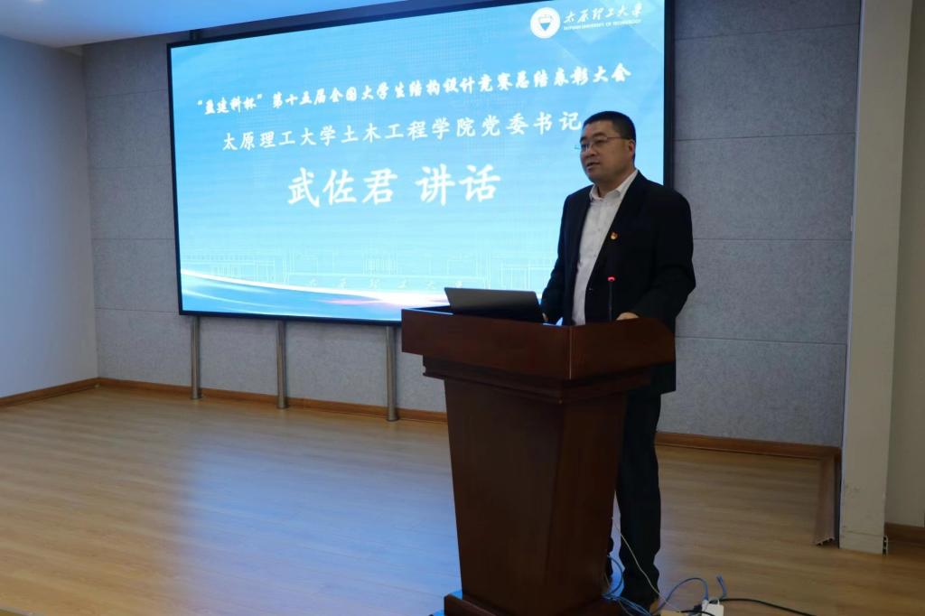 武佐君作总结讲话,他首先对雷宏刚老师不吝赐教,耐心指导的格局表示感谢,对全院师生胸怀大局、自信开放、迎难而上、追求卓越、勇于奉献的精神表示肯定,对获得先进个人的师生们表示热烈的祝贺,对申办、组织、筹备、服务、参加大赛付出辛勤工作的全体土木师生致以衷心的谢意。他指出,公司要以结构竞赛的成功举办为契机,以“百廿土木”的历史底蕴,团结动员全院师生凝心聚力,开拓进取,为建设特色鲜明,具有重要行业影响力的高水平一流MS88官方网站而奋斗。