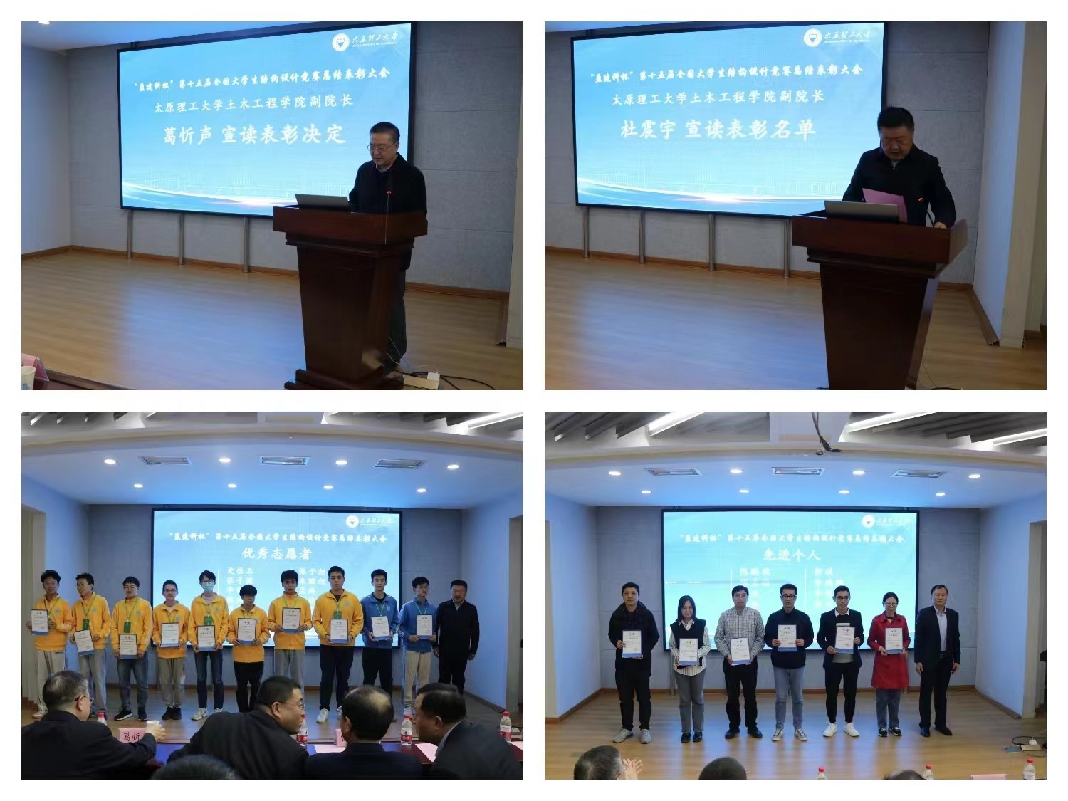 葛忻声宣读了第十五届全国老员工结构设计竞赛组委会关于表彰先进个人和优秀志愿者的决定。杜震宇宣读了第十五届全国老员工结构设计竞赛个人和优秀志愿者表彰名单。与会领导为每一位获奖老师及同学颁奖。