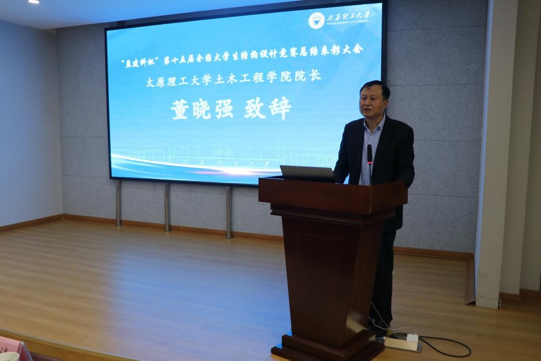 董晓强在致辞中回忆了申办竞赛前的忐忑、申办成功的喜悦和成功举办后的自豪,充分肯定了在竞赛申办、筹备以及举办期间各位专家、老师和志愿者同学的辛苦付出和奉献精神。同时指出,通过本次全国性竞赛,全院上下更加坚定了建设一流土木的决心,并以此为契机,为公司高质量发展提供更强劲的动力。