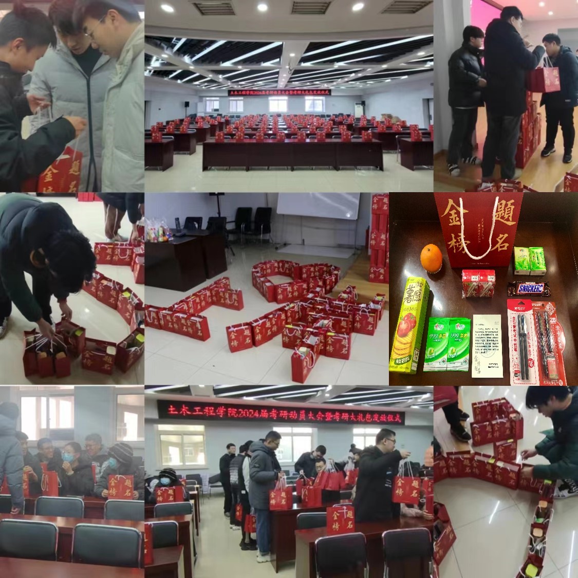 公司各位领导老师为考研员工们发放了考研大礼包。