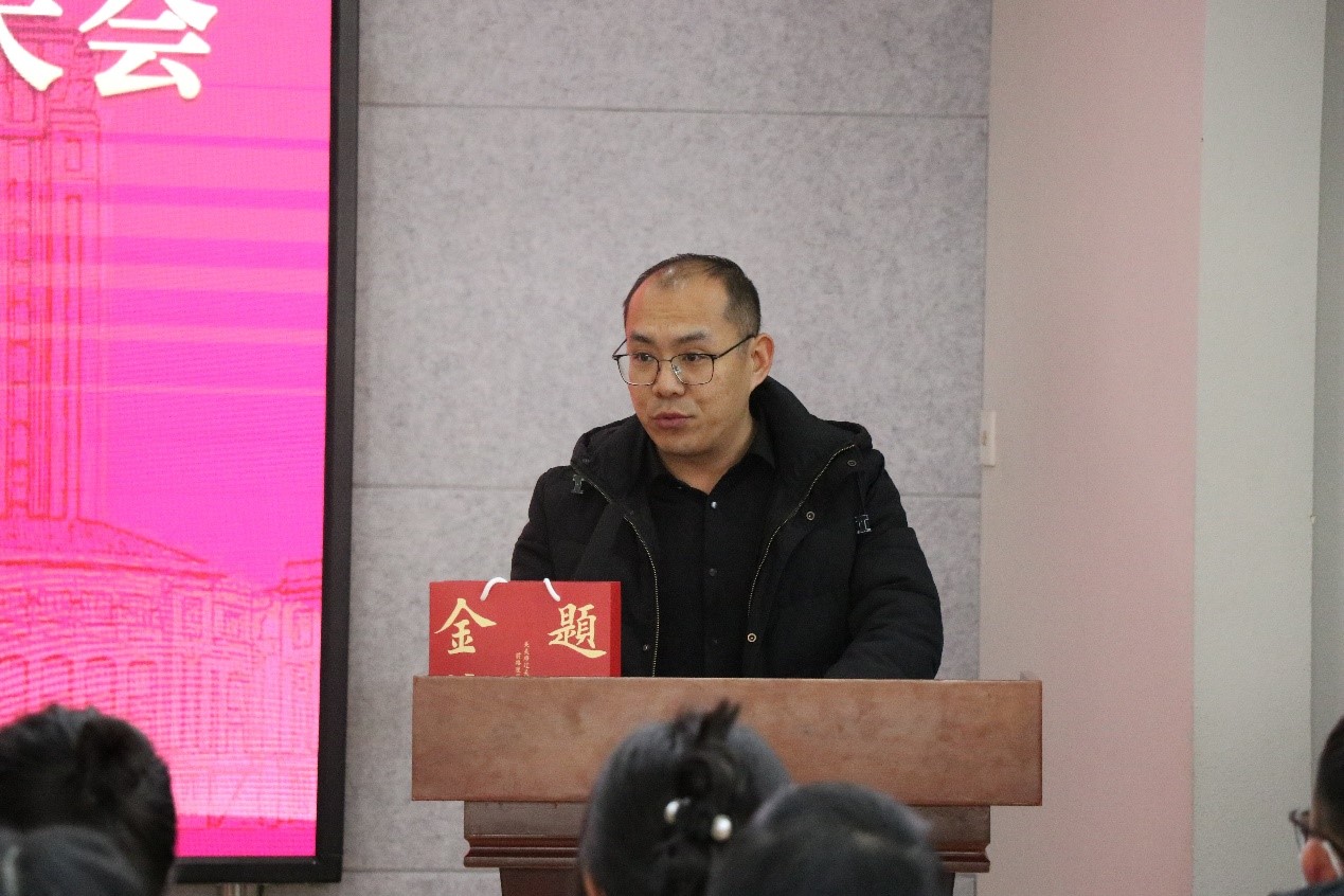 董晓强在会上作考研冲刺动员讲话,对走上考场的各位考生送上鼓励和祝福,希望大家脚踏实地,以良好的心态、不懈的努力、稳定的发挥,考出理想的成绩,为自己的未来努力奋斗;同时解读了本次考研大礼包的美好寓意——“愿你心想事成”。
