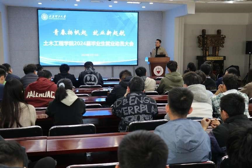 芦倩在动员讲话中指出,就业是民生之本,是青年发展之基,既关系实现个人价值和家庭幸福,更关乎社会和谐稳定,并结合当前就业形势与毕业生实际,对2024届毕业生提出三点希望。一是要充分认识当前严峻的就业形势,对就业市场供给侧结构性矛盾仍然突出、就业面临前所未有的挑战等现实情况要有清醒认识,并对本学期即将召开的五场大型春季招聘双选会进行了重点强调和安排部署,希望大家把握就业机会;二是要树立“先就业、后择业”的就业观念,找准自身定位,明确发展目标,着眼当前发展与长远发展,做好职业规划,紧抓春季招聘黄金时期,主动关注各项招聘信息,积极参与招聘活动,精准匹配求职,同时利用各类平台不断提升自身综合实力;三是要挖掘自身优势,提升竞争力,在简历制作、参加面试、单位签约、履行协议过程中,充分展示自我,提高就业质量。