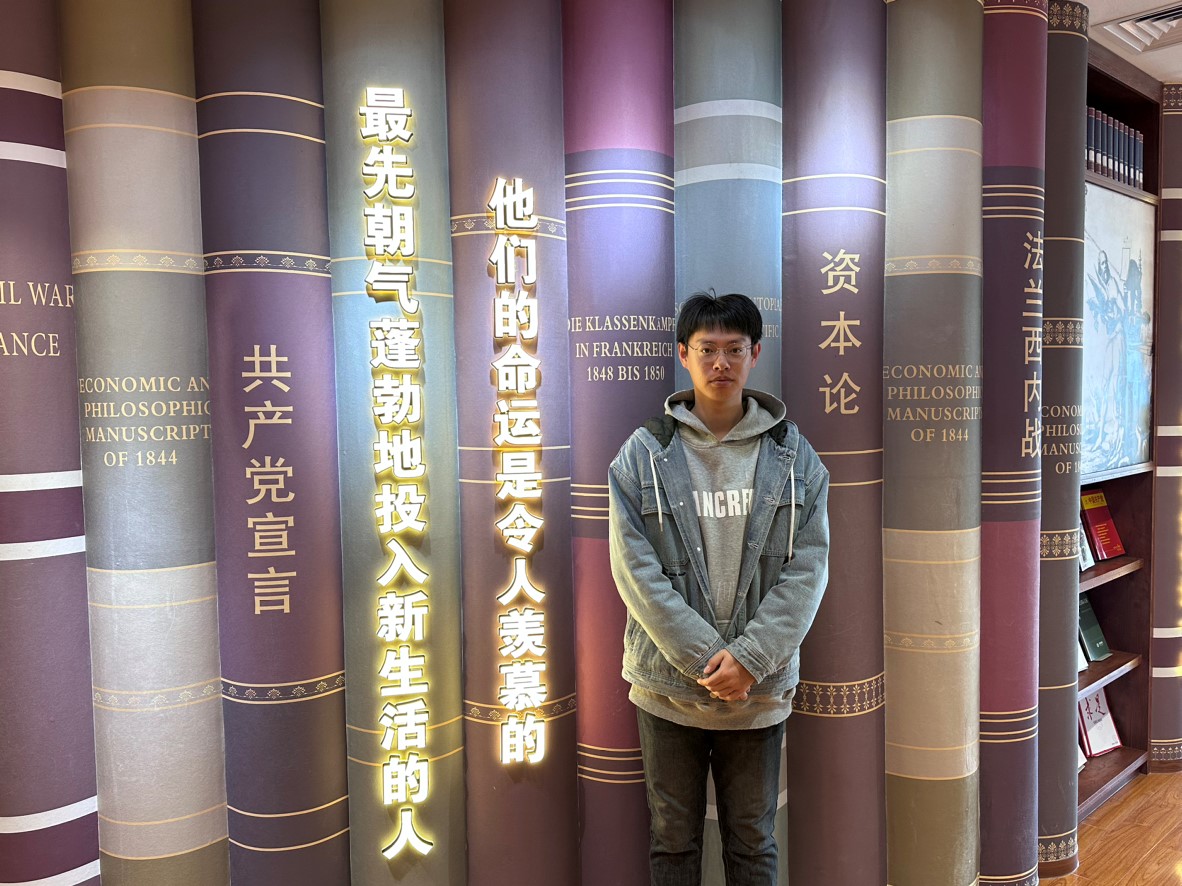看着墙壁上的老照片,建环能源三班的张箴祥感慨:“参观马克思书屋的经历不仅是一次深刻的文化体验,更是一次心灵的洗礼和思想的升华。在这个以马克思主义为核心的知识殿堂里,我仿佛与历史上伟大的思想家马克思进行了一次跨越时空的对话,深刻感受到了马克思主义真理的力量和时代的光辉。书屋的每一幅展览画、每一本著作都让我对马克思主义有了更加全面和深入的理解。这里对马克思生平和理论的介绍,让我更加明确了学习马克思主义、实践马克思主义的重要性和紧迫性。学习马克思主义既是思想启迪,更是一种精神传承,让我深刻认识到,作为新时代的青年,我们不仅要学习马克思主义的理论精髓,更要将其融入到日常生活和工作实践中,用以指导我们面对困难和挑战,并激励我们不断前进。“但愿苍生俱饱暖,不辞辛苦出山林”,参观马克思书屋的体验,是一次心灵的触动,也是思想的觉醒。它不仅让我更加坚定了对马克思主义的信仰,也让我深刻理解到,只有不断学习和实践马克思主义,才能更好地担当起新时代青年的历史使命,为实现中华民族的伟大复兴贡献自己的力量。