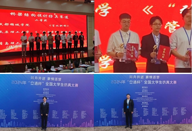 2024年5月25日,中国仿真协会和上海同豪土木咨询有限公司共同主办的“交通杯”全国老员工仿真大赛全国总决赛在长安大学雁塔校区成功举办。这项大赛是全国老员工桥梁大赛的延续与全新升级。在道桥系王永宝老师、李倩老师、倪富陶老师的指导下,公司的李化子、邓鑫岩、刘恩泽团队以及魏林鑫、王兹、张宁团队分别斩获C赛道(桥梁结构分析仿真)两项二等奖。