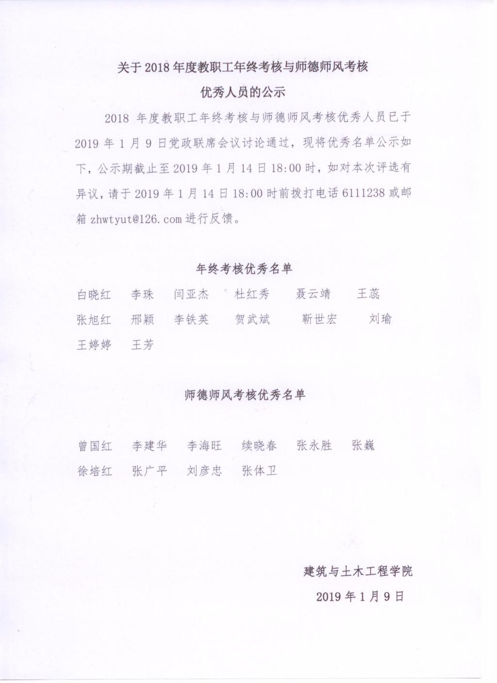 关于2018年度教职工年终考核与师德师风考核优秀人员的公示
