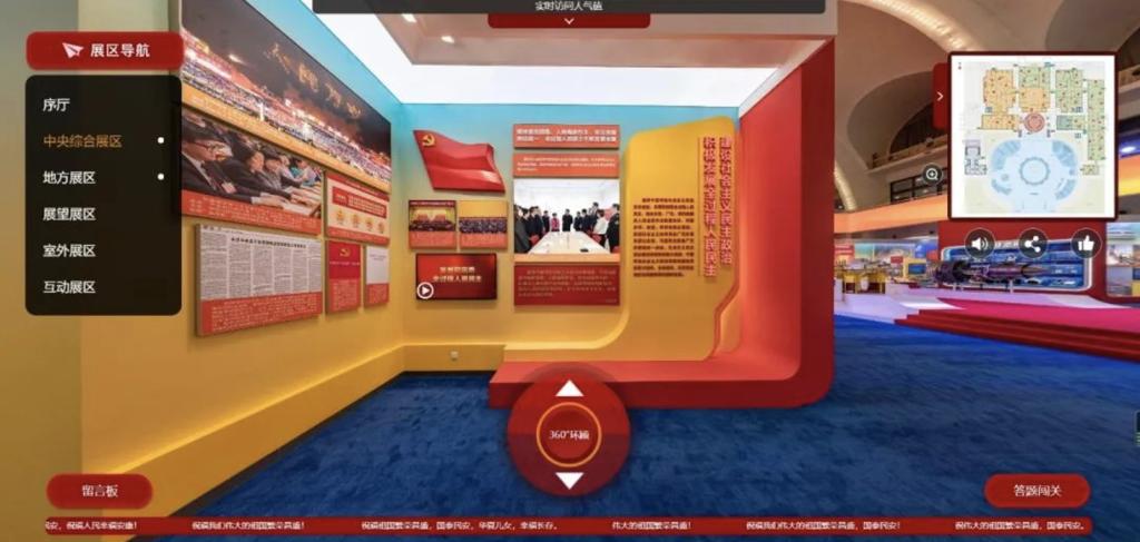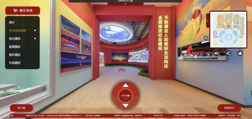 1、展馆情况及参观网址。“奋进新时代”主题成就展于2022年9月27日在北京展览馆隆重开幕。主题成就展设序厅、中央综合展区、地方展区、展望展区、室外展区和互动展区6个展区。网上展馆以新媒体平台为依托,全景展示展览现场,生动再现展览全貌,全景式还原现场体验。网上展馆网址链接如下: