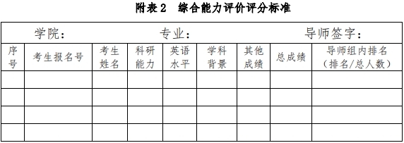 报考导师根据评分标准,基于考生提供的报名材料如实打分,并按成绩由高到低排名,填写附表2,导师签字后由培养单位留存备查。