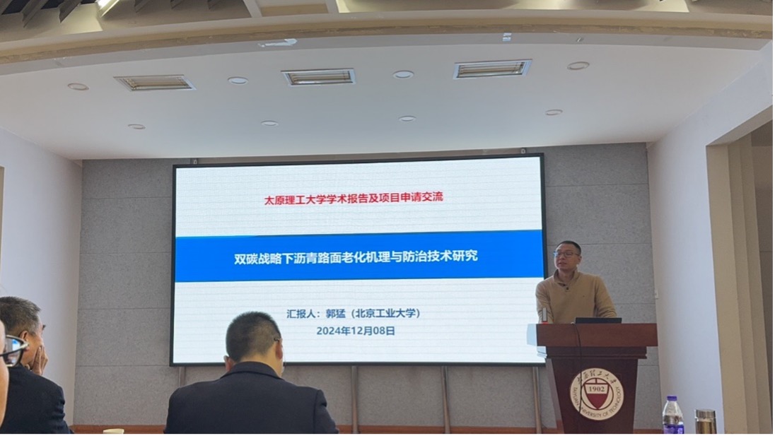 2024年12月9日上午,北京工业大学郭猛教授应公司邀请,作了题为“双碳战略下沥青路面老化机理与防治技术研究”的学术报告,相关领域师生参加了报告会。