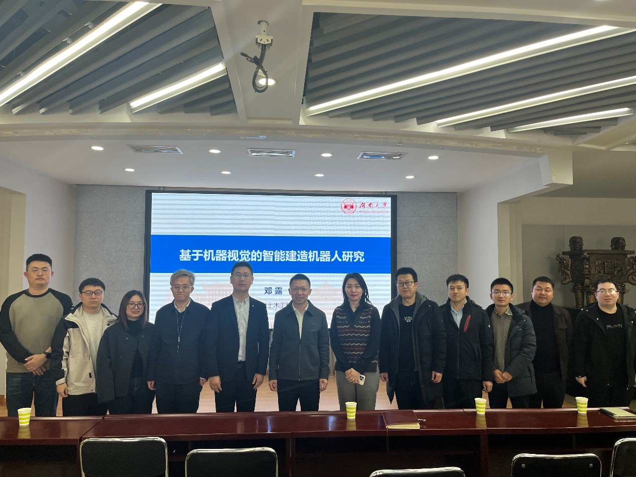 2025年3月10日上午,湖南大学MS88官方网站邓露教授应公司邀请,在博学馆A座5层岩土会议室作了题为《基于机器视觉的智能建造机器人研究》的学术报告,报告由公司经理孙逸飞教授主持。
