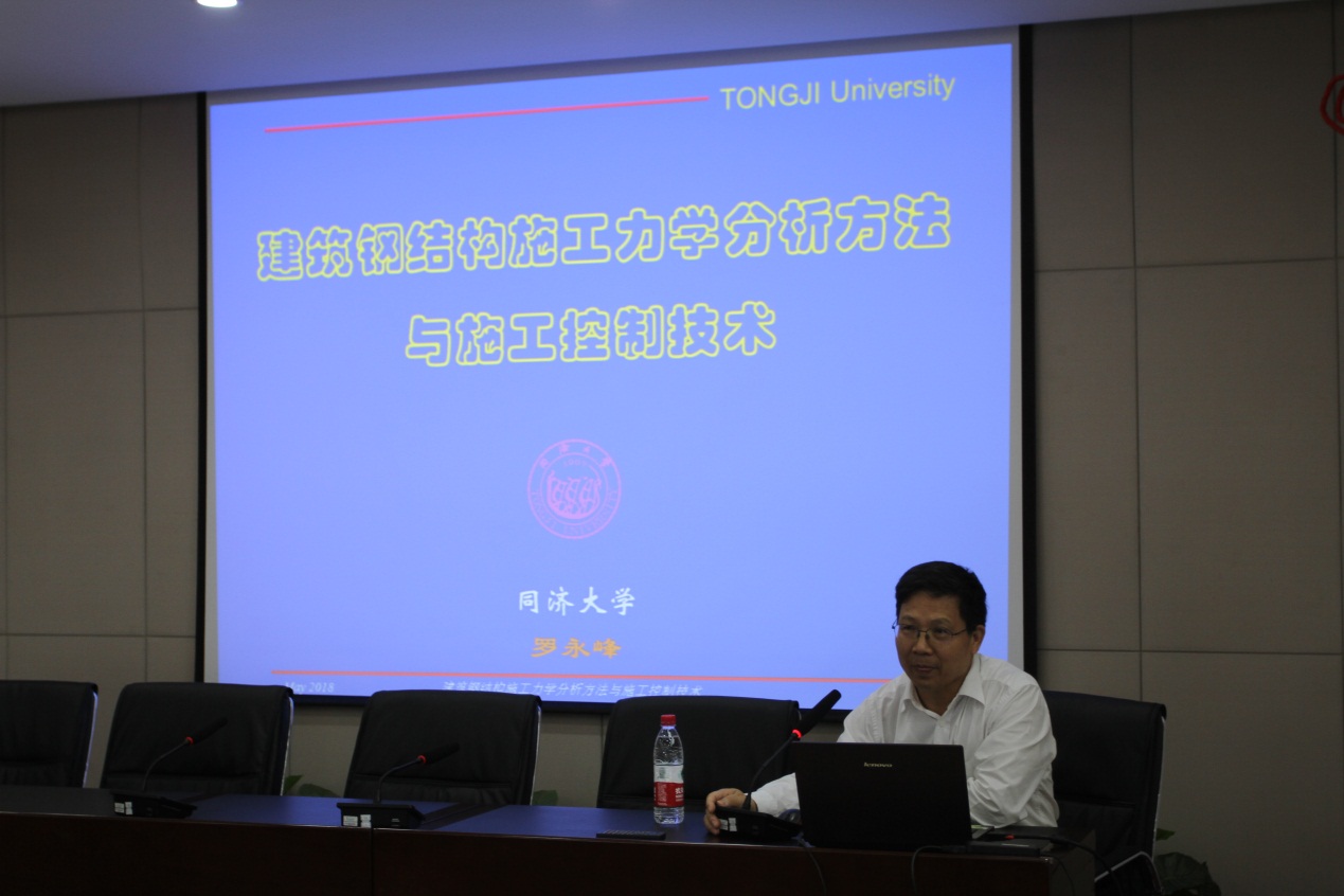 应公司的邀请,同济大学罗永峰教授于2018年5月30日到访公司,在博学馆五层会议室做了题为“建筑钢结构施工力学分析方法与施工控制技术”的学术报告,由雷宏刚经理主持,土木系师生100余人聆听了此次报告。
