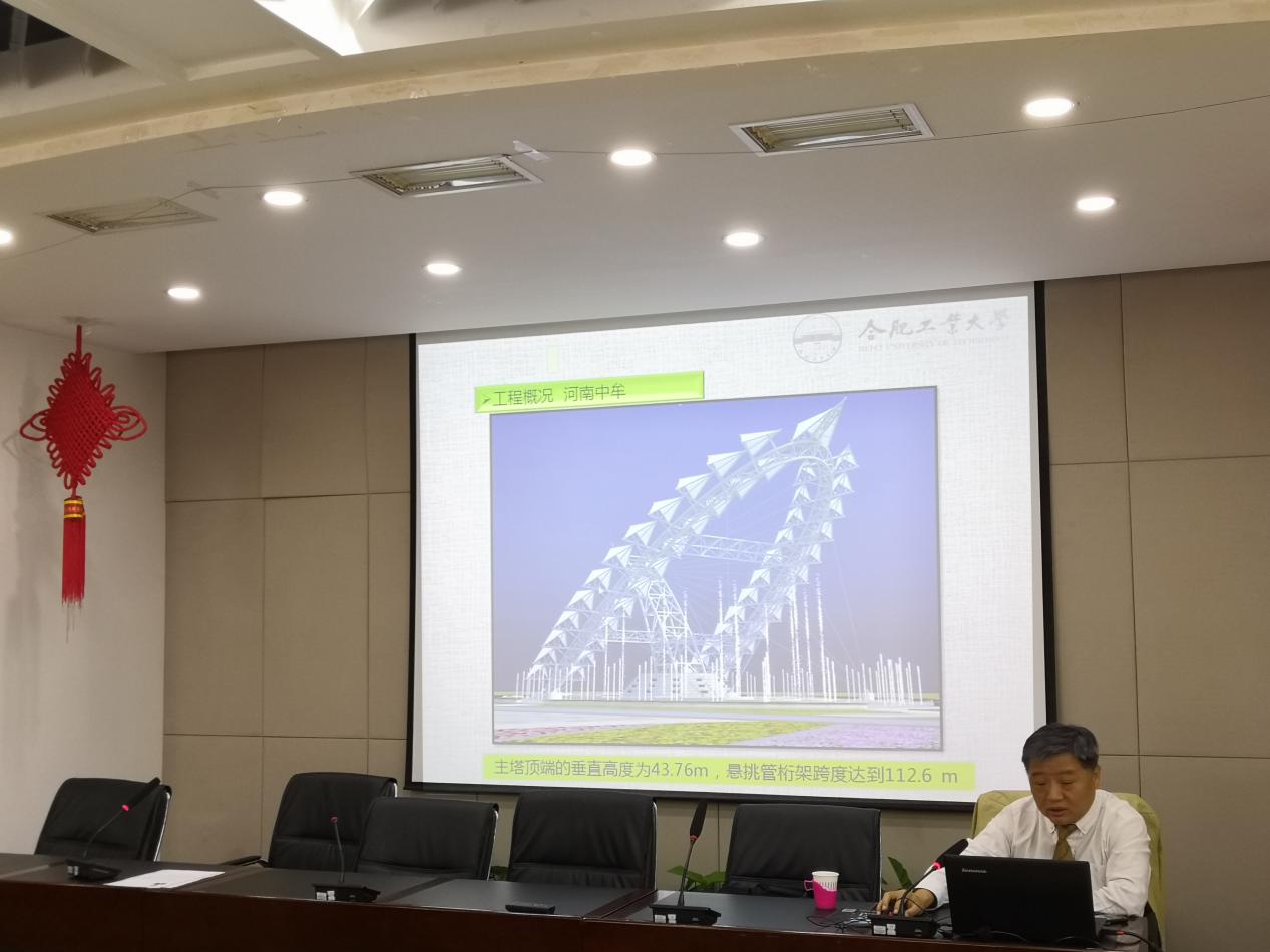 应公司邀请,合肥工业大学完海鹰教授于2019年5月30日到访公司,在博学馆五层会议室做了题为“大跨度杂交空间结构施工监测及稳定性分析”的学术报告,由雷宏刚经理主持,土木系师生100余人到场参加。