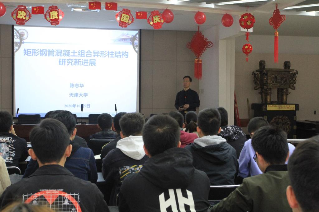 2020年10月9日,陈志华教授应邀在公司五层会议室做了主题为“矩形钢管混凝土组合异形柱结构研究新进展”的学术报告,报告由董晓强副经理主持,公司100余名师生聆听了此次报告。