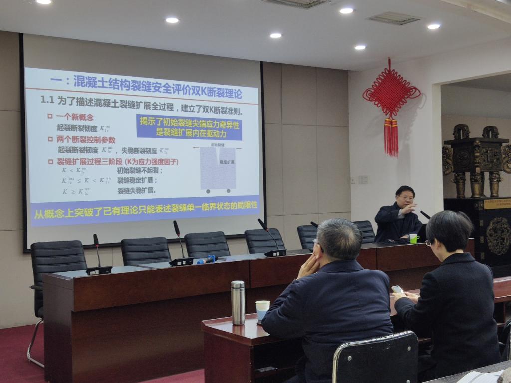 报告中,徐世烺教授围绕“混凝土的断裂韧性”这一主题展开,讲解了混凝土结构裂缝安全评价双K断裂理论,详述了高韧性混凝土设计原理与制备技术及结构性能,最后介绍了双K断裂理论和高韧性混凝土在重大工程中的实际应用。徐教授指出,高韧性混凝土因其具有的特殊优势,为保障我国重大基础设施的安全与健康服役提供了重要科技支撑。在随后的互动环节,徐教授针对师生们提出的问题进行了详细解答,现场气氛活跃,反响热烈。