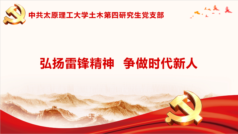 为深入学习贯彻党的二十大精神,弘扬新时代雷锋精神,增强党员服务意识。根据公司及公司党委的统一部署,2025年3月6日,土木第四研究生党支部在公司五层会议室举办了“弘扬雷锋精神,争做时代新人”主题的党日活动。本次活动设计了“专题学习”和“交流讨论”两大环节,旨在通过深入学习与热烈讨论,进一步凝聚党支部的向心力,充分发挥党员的先锋模范作用。