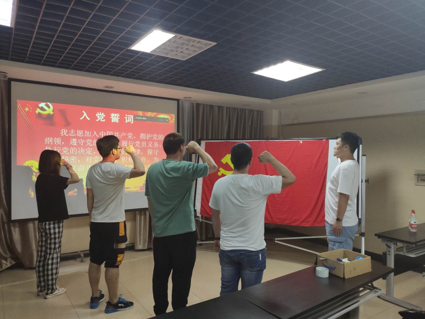 本次会议主要有五项议程:第一项是三名发展对象依次宣读入党志愿书,介绍各自入党动机、入党态度以及政治思想觉悟。第二项是由入党介绍人介绍三名发展对象在考察期的表现情况及考察情况,并表明意见。第三项是由支部委员张进标同志汇报三名发展对象的政审情况。第四项是与会党员讨论与意见、投票表决。为了充分发挥民主,充分体现党员意志,会议以举手表决方式,全票同意接收罗帅君、杨静、吴振戌三名发展对象为预备党员。第五项是入党宣誓仪式。在领誓人王鹏飞同志的带领下,今年新发展的预备党员和转正的党员面向党旗,举起右手在鲜红的党旗下庄严宣誓。大会最后,预备党员代表罗帅君发言,表示要在今后的工作、学习和生活中,不断加强自身党性修养、积极进取、与时俱进、开拓创新,以优异的成绩回报党和人民;老党员代表万佳结合自己的成长经历,对新党员提出希望和要求;党组织负责人王永宝书记对此次大会进行了总结,希望老党员能够积极参加党组织的活动,起到党员应有的先锋作用,做一名合格的共产党员。要求新党员学习强国,协助支部委员完成支部任务,学习党的会议精神及理论知识讲座等。