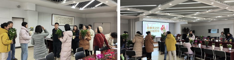 春回大地,花香满室。在第115个国际劳动妇女节即将到来之际,为丰富公司女教职工文化生活,传递节日祝福,展现女性风采,院工会于2025年3月5日下午在公司五层会议室举办了“赴春天之约 绽巾帼芳华”绿植插花主题活动。公司50余名女教职工齐聚一堂,以花为媒,以绿为伴,体验自然之美,共赴春日之约。
