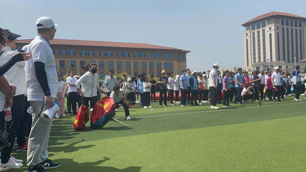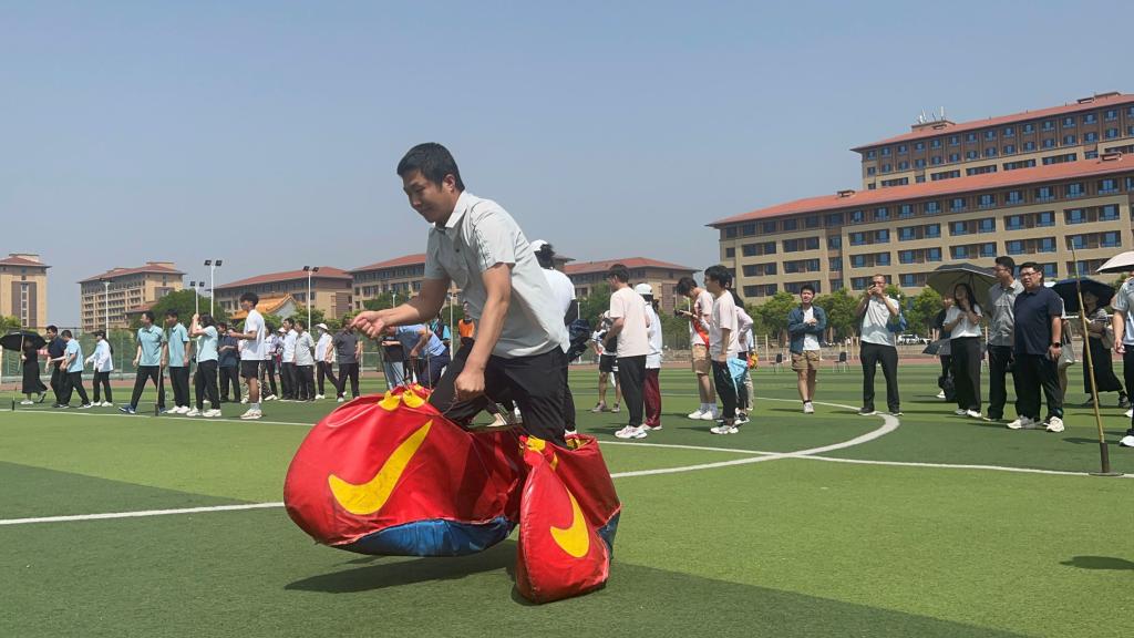 赛前,“嘻哈大脚”项目负责人刘晓凤老师根据代表队个人特点调整出场顺序,积极鼓励队友发挥勇于超越、永不言败的精神,代表队以昂扬的斗志,顽强拼搏的精神完美地发挥出团队的实力。参赛队员们不仅需要穿上厚重的大脚麻袋进行往返跑,还需要与下一个队友进行快速交接。取得胜利不只靠个人的努力,还要求队员之间密切的配合。在团队六人的默契配合下,做到了起跑零失误,交接零失误,极大地增强了队员之间的团结协作意识。
