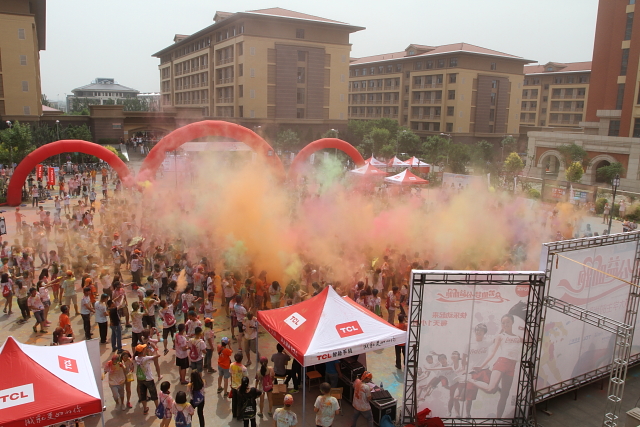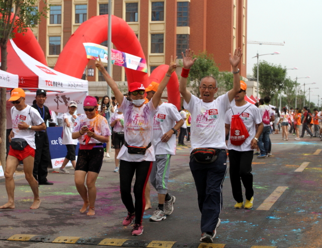 “彩虹跑”(The Color Run),是一项2011年发源于美国的运动,被称为“地球上最快乐的5公里赛跑”,参加者身着白色T恤,跑步过程中经过不同的彩色站,会被从头到脚抛撒彩色粉末,到了终点的时候,选手们就成为了色彩斑斓的彩虹人,这个创意的来源于印度的“洒红节”, 这些彩色粉末一般是由纯天然玉米粉制成。