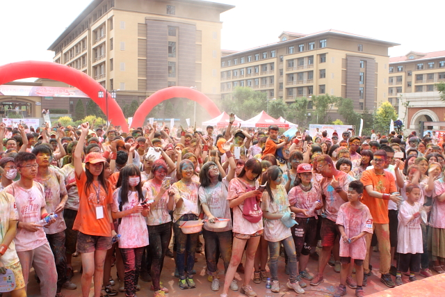 “彩虹跑”活动主会场设在明向校区东区广场,路线全长3公里、共设7个彩点。运动员共分5组,间隔出发,不计时、零压力,用健康、快乐的方式完成整个路程。到达终点后,所有人将彩粉洒向天空,洒向彼此。一时间,各种欢呼声此起彼伏,天空也变成了七彩斑斓的色彩。